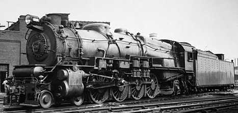 Pennsy's last conventional freight locomotive was the M1 4-8-2 of 1923. It was based on the 2-10-0 I1 - the same boiler - and many parts were interchangeable. It had 27" x 30" cylinders and 72" drivers and weighed 385,000 pounds. Following the road's usual practice, Juniata built one which was tested thoroughly. Early modifications were a larger tender - the first one had a low-side tender appropriate for the E6 Atlantic - and mechanical stoker. Baldwin and Lima delivered a total of 200 M1's in 1926 and Baldwin, Lima and Juniata built 100 M1a's in 1930. Designed as a dual-service engine, some M1s were striped and painted for passenger service, but the New York-Washington electrification freed great numbers of Pacifics, which couldn't be used on freight but could be doubleheaded on passenger trains, to release the Mountain types for freight. (From "Guide to North American Steam Locomotives" by George H. Drury.)